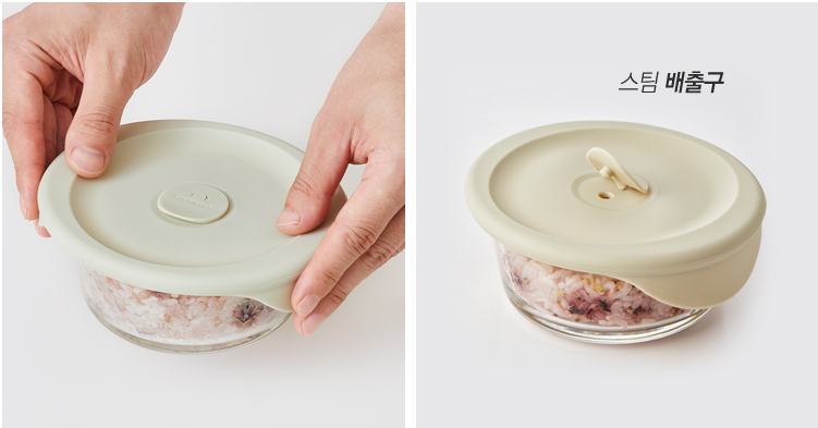 내열유리(밥용기) + 실리콘고무(뚜껑)로 만들어져